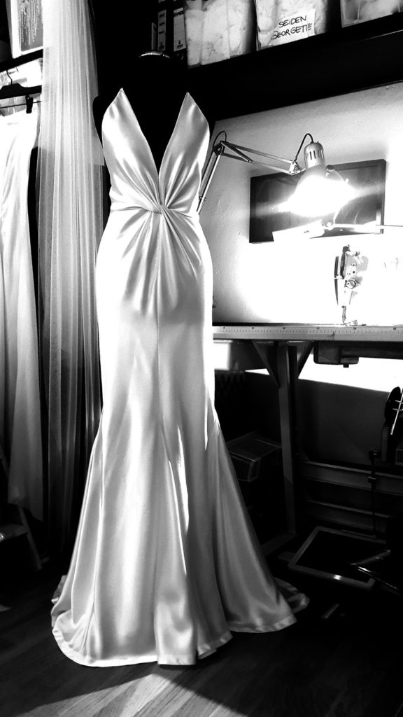 I had my dress made in another country but I was not happy with the result at all. Since i am very petite, custom-made dress was my only choice. Originally I had other design ideas in mind but I almost tried all of her collection and I did find a dress that I felt beautiful in it. She listened carefully to my thoughts and explained everything thoroughly during the whole process. I wanted a simple, elegant and timeless dress that I could wear it again for special occasions and my dress is just perfect for that. Together we created my ideal dress that was based on her design. Until today I’m still very happy about my dress. Franziska is a very nice person and a experienced professional artist that has very high standards in her work. I can only strongly recommend.